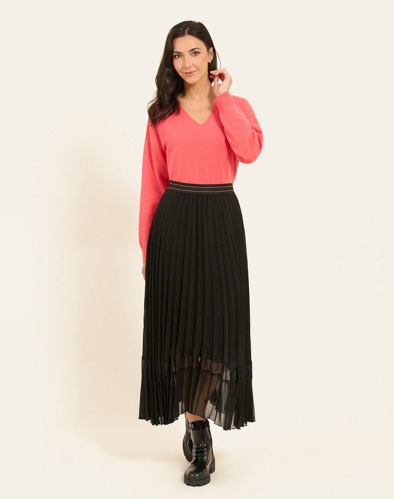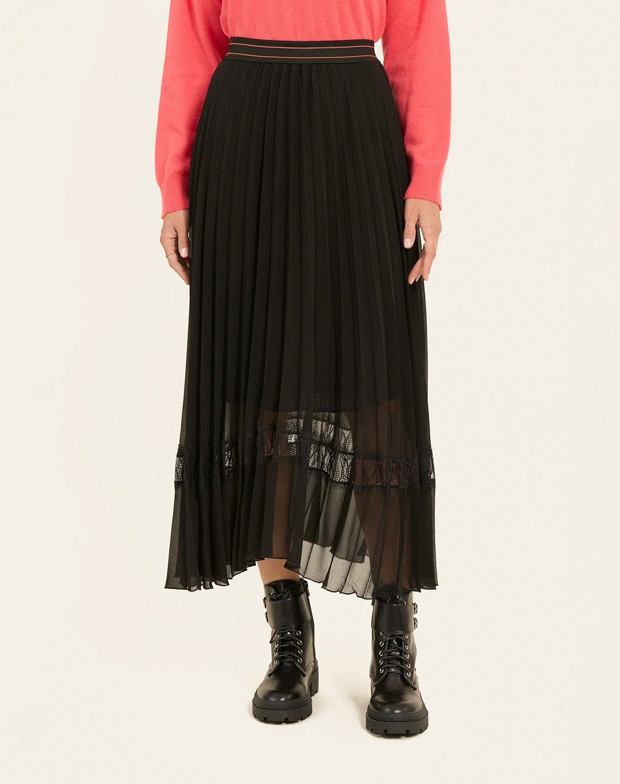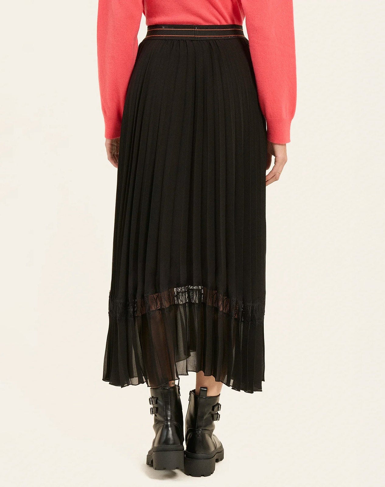 Falda midi plisada mujer, tiene talle alto y tejido fluido, detalle de encaje en el bajo, cintura elástica y lleva forro. Negro La modelo mide 177 cm y está utilizando la talla s 100%POLIESTER BHNJ427-0625 Entrega en 48/72 horas. Para más info, haz click aquí No se admiten cambios de talla. Si tienes cualquier otra duda, haz click aquíENVIO
